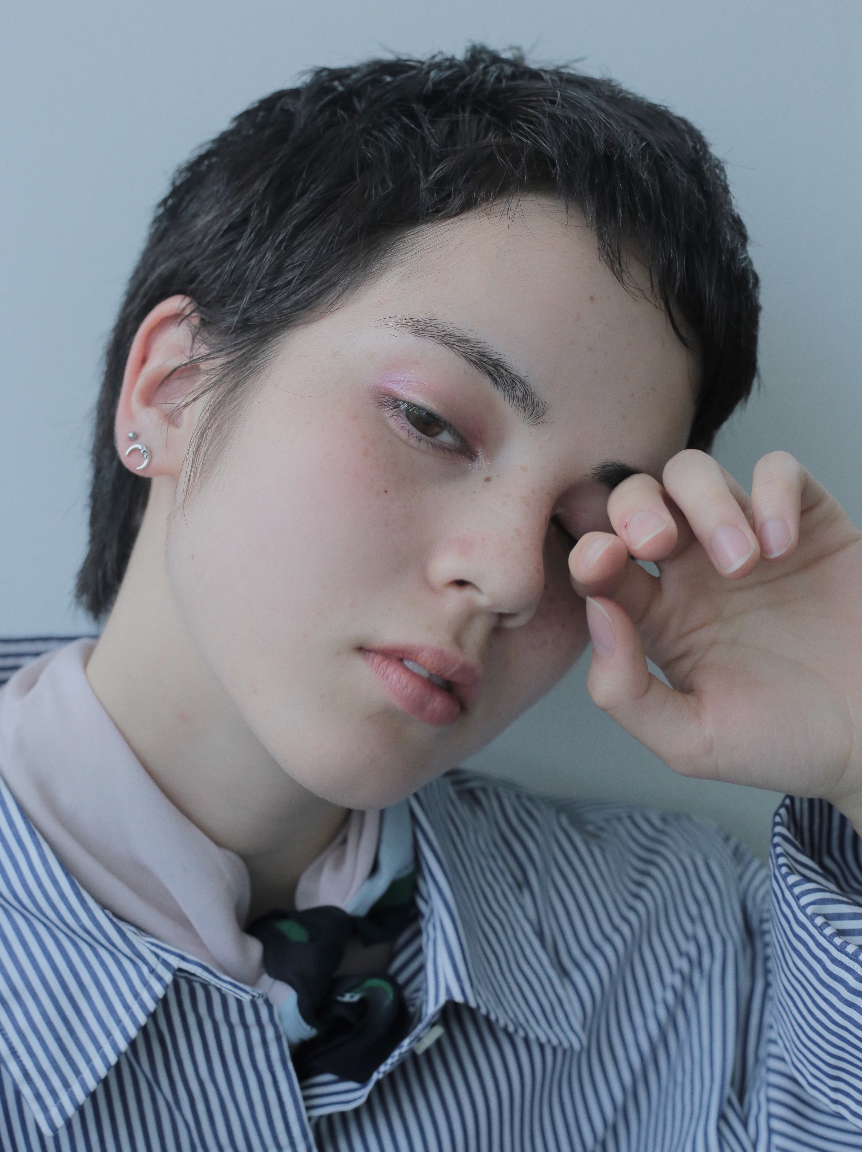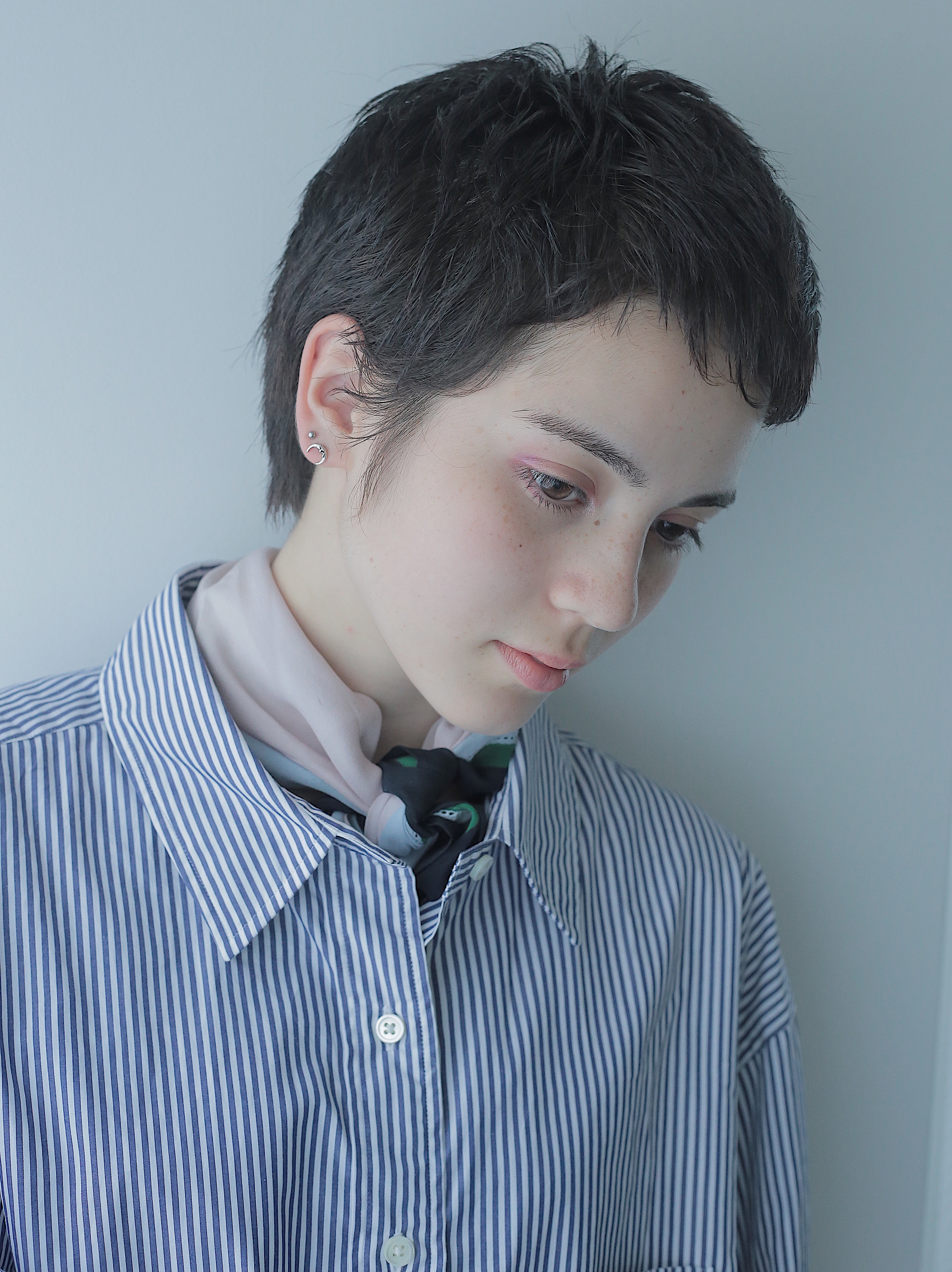 menslikeなショートスタイルですが、メイクとファッションでバランスをとりました
